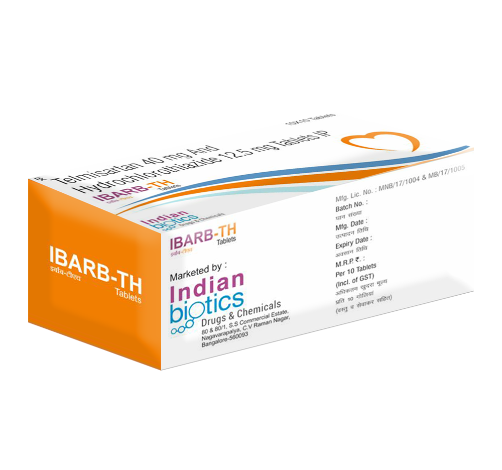 | 1) IBARB - TH | TELMISARTAN 40MG + HYDROCHLOROTHIAZIDE 12.5MG TABLET |